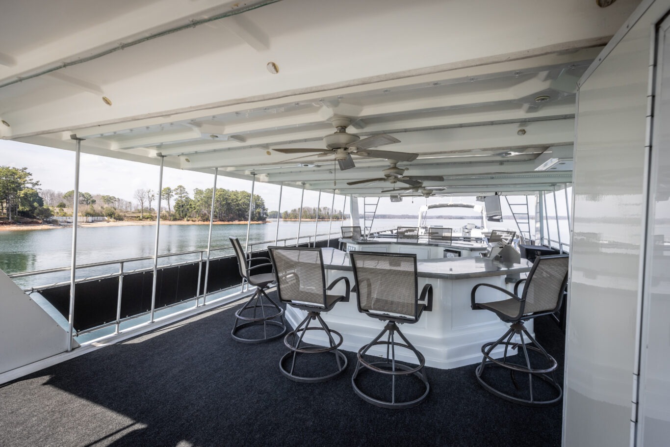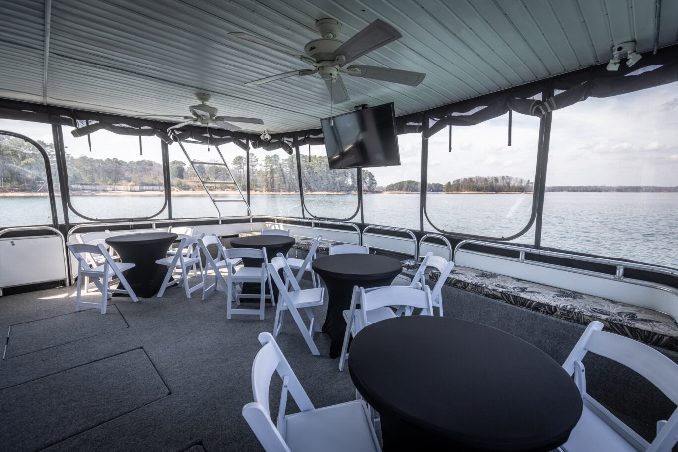 The upper deck is where The Fantasy truly comes alive. This fully open-air level is designed for energy, entertainment, and unforgettable moments on the water. With plenty of room for dancing, lounging, celebrating, and taking in the panoramic lake views, this deck creates the kind of atmosphere guests remember long after the event ends.