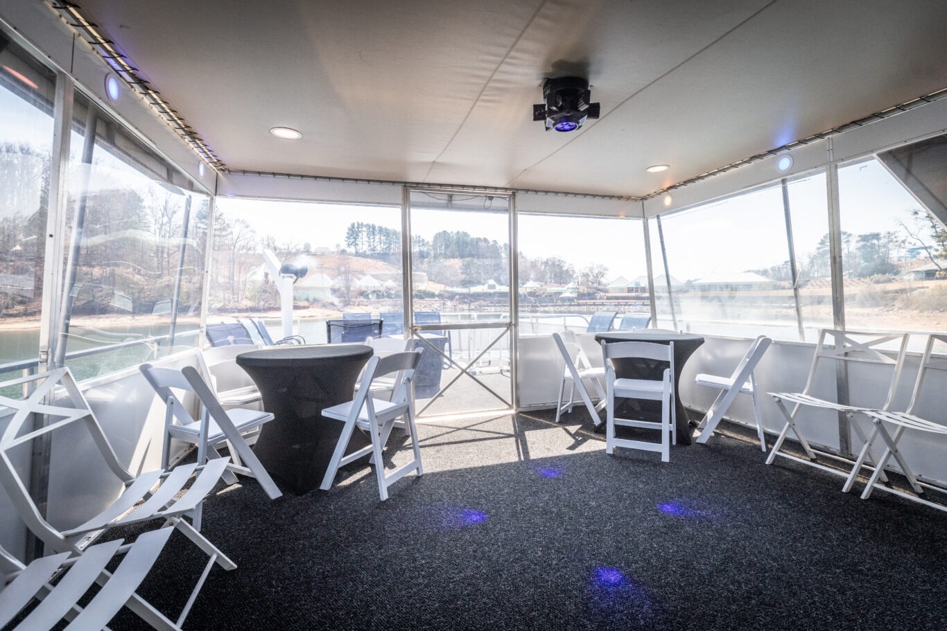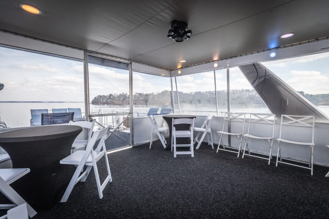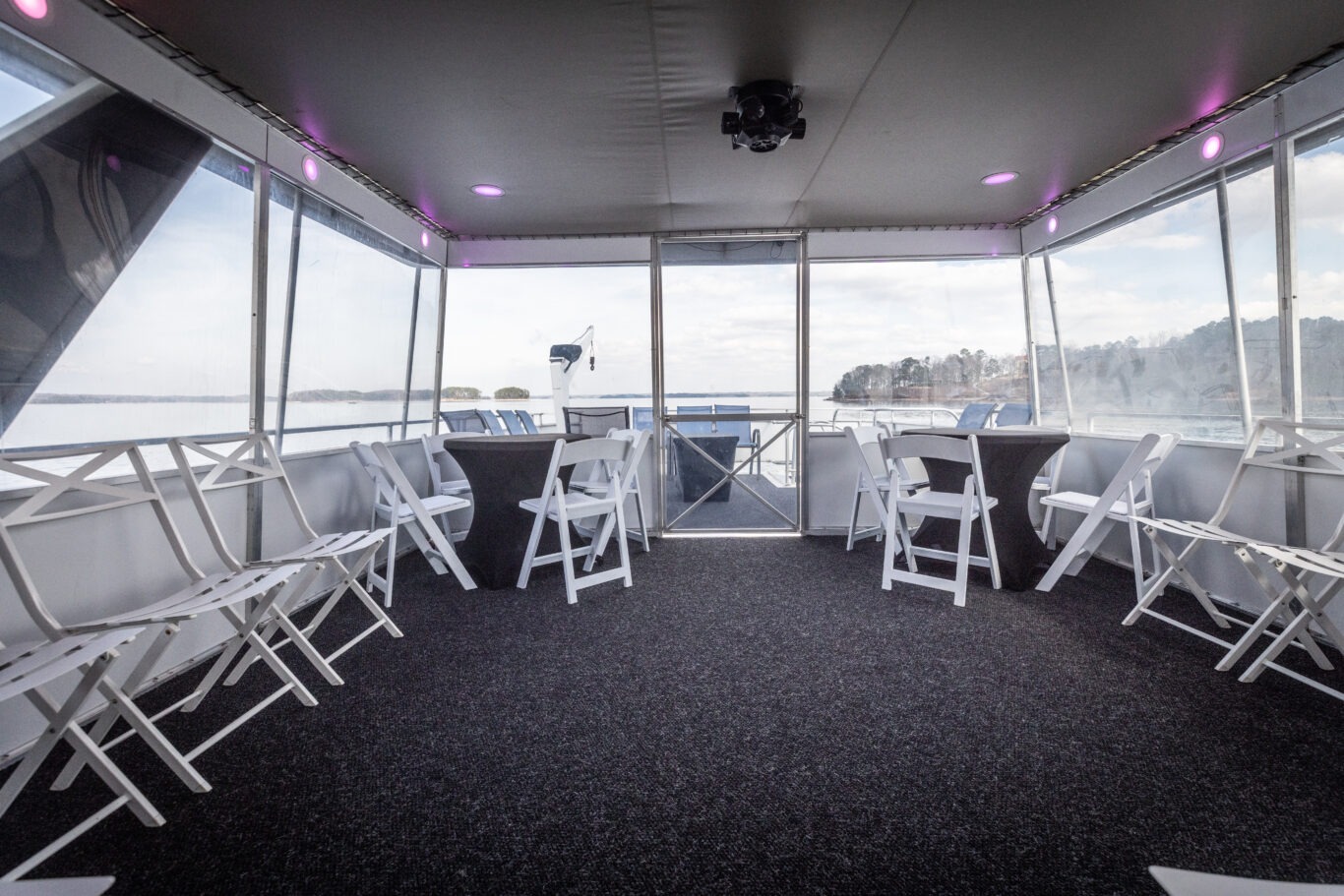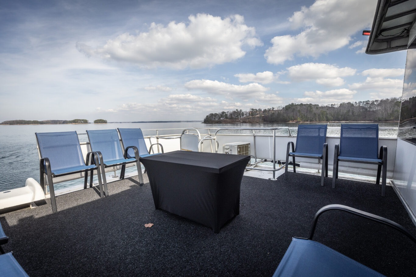 Companies frequently use this area for intimate corporate meetings or leadership retreats, combining productivity with the relaxing atmosphere of a private cruise venue on Lake Lanier.