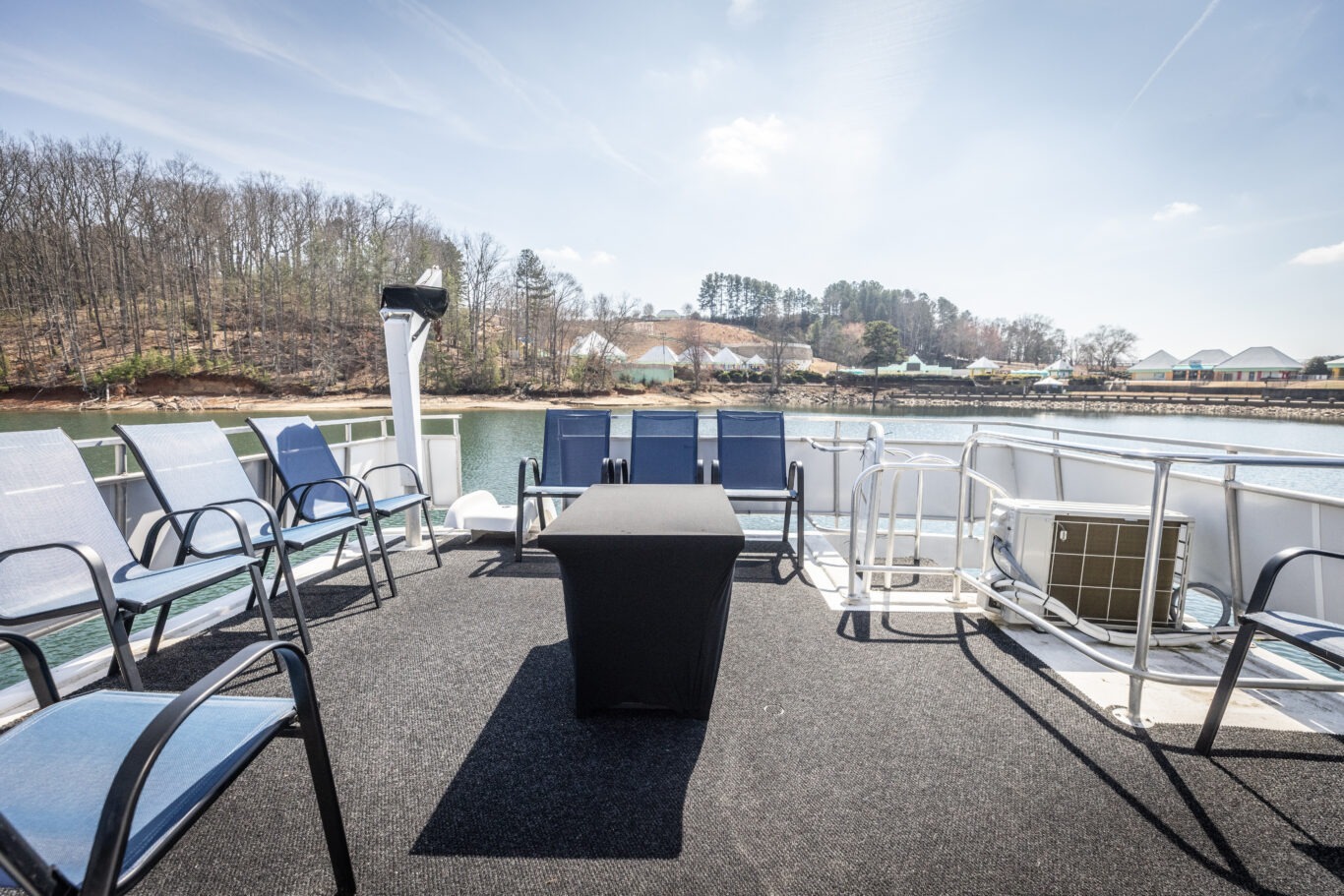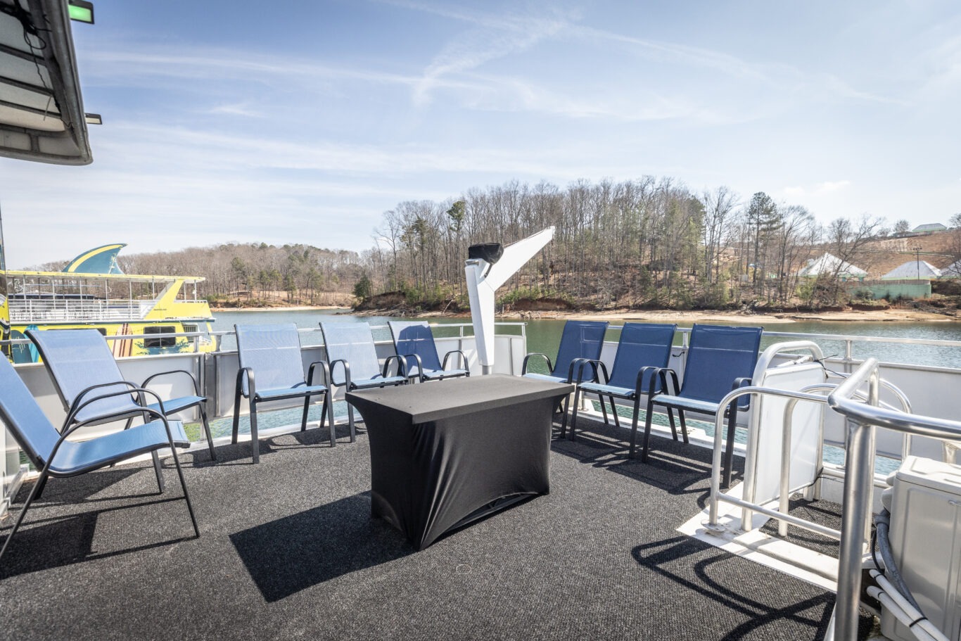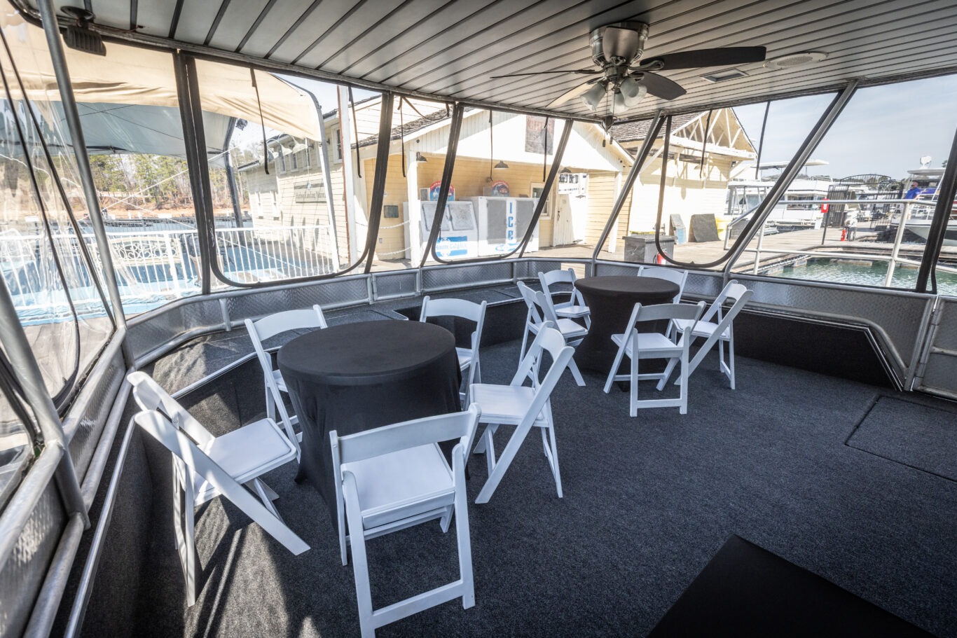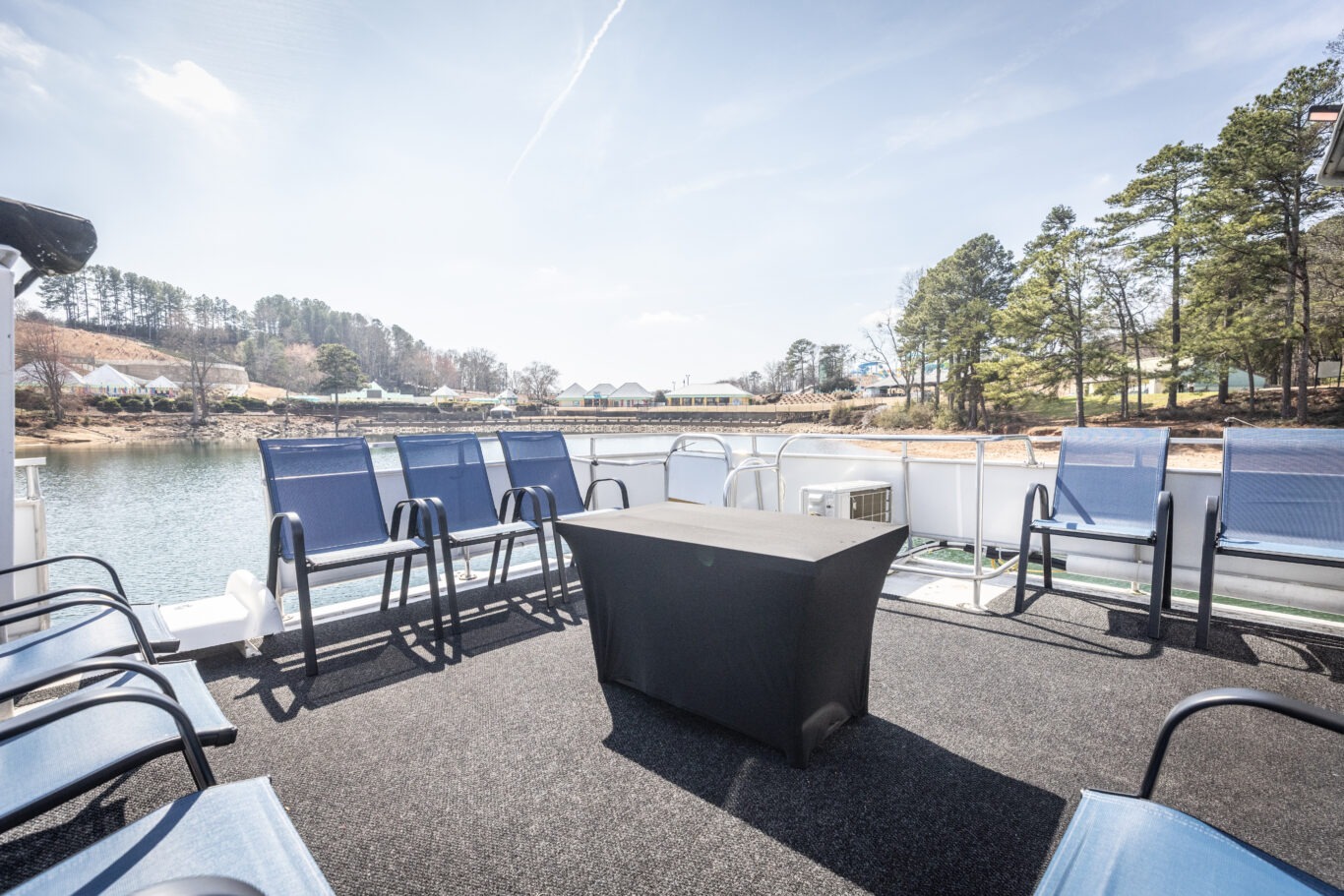 Companies frequently use this area for intimate corporate meetings or leadership retreats, combining productivity with the relaxing atmosphere of a private cruise venue on Lake Lanier.