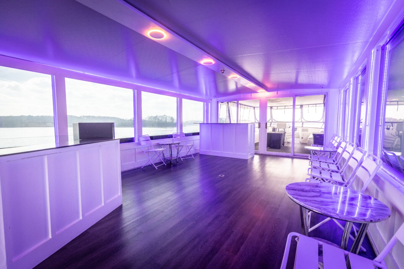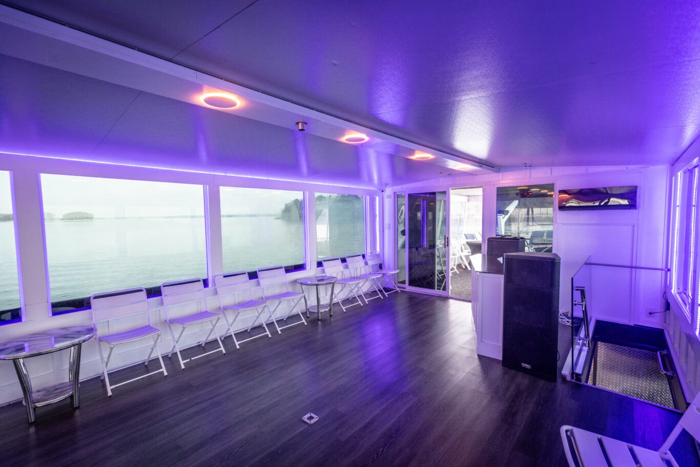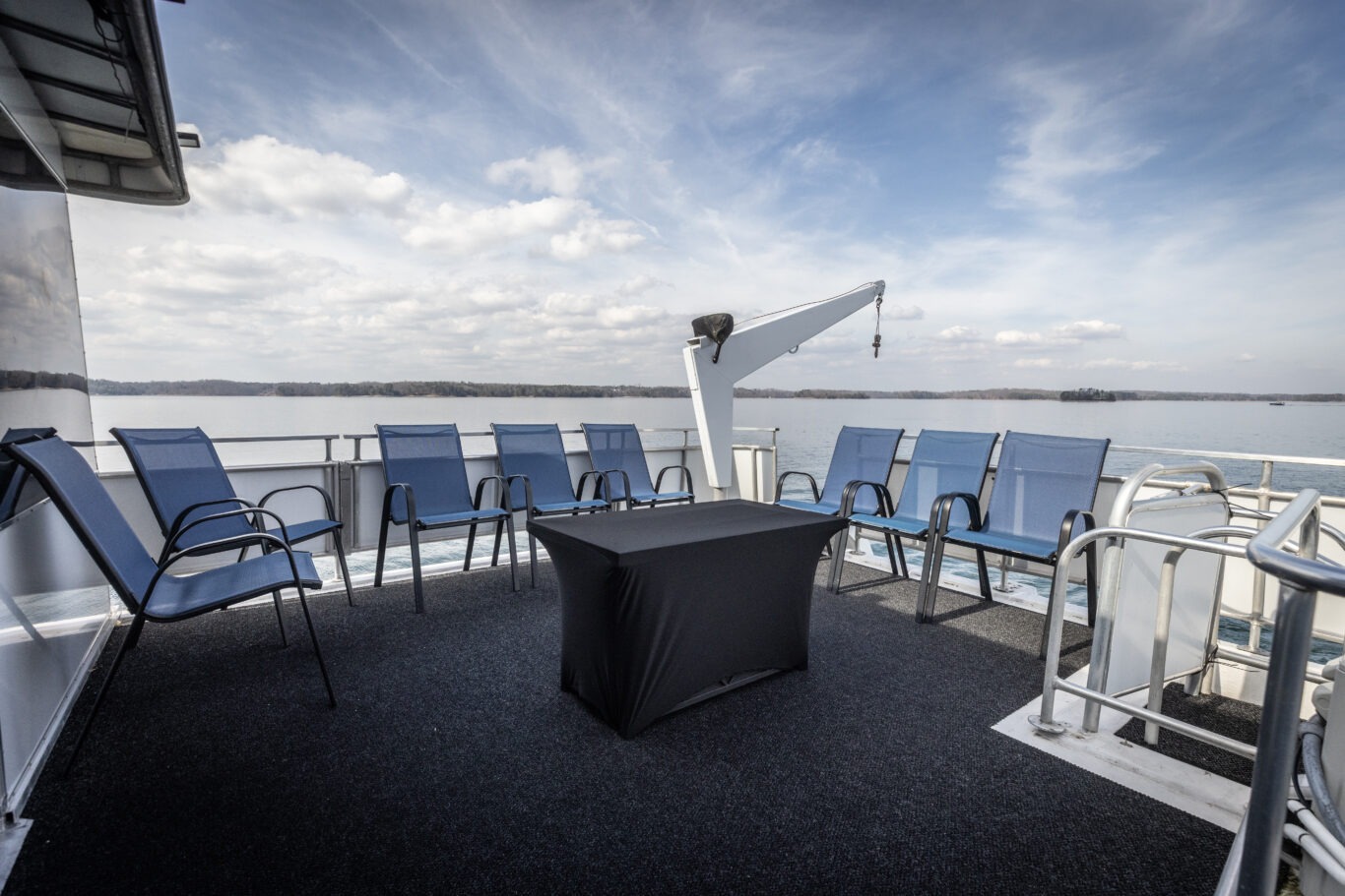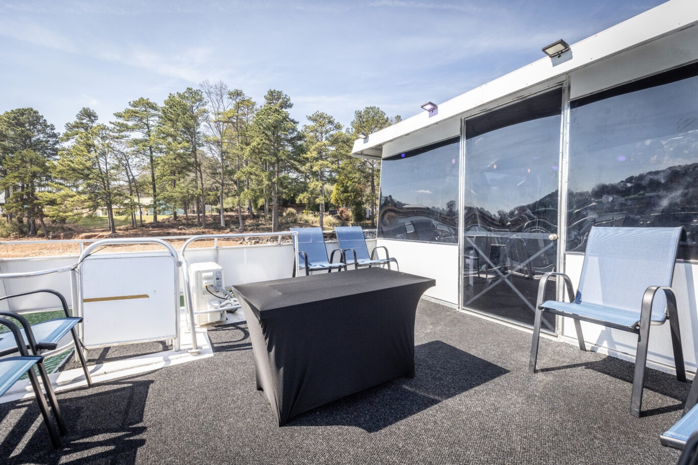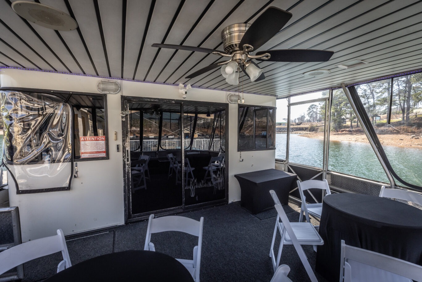 Companies frequently use this area for intimate corporate meetings or leadership retreats, combining productivity with the relaxing atmosphere of a private cruise venue on Lake Lanier.