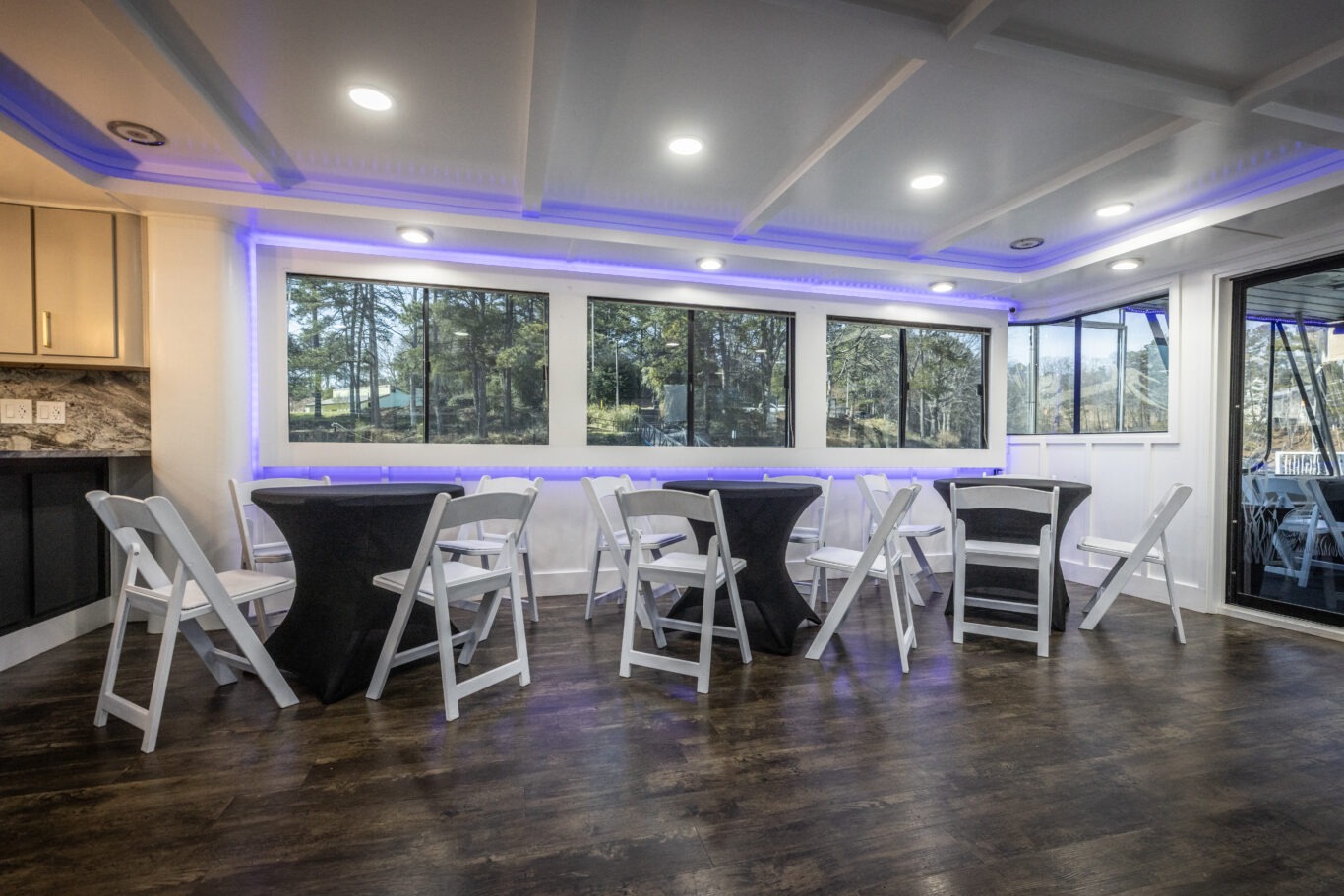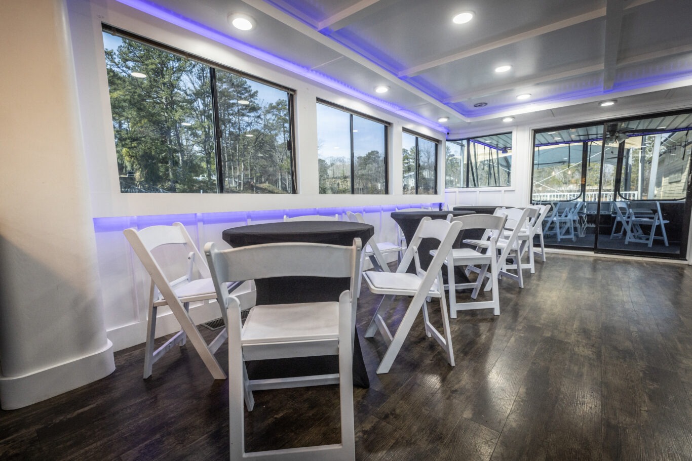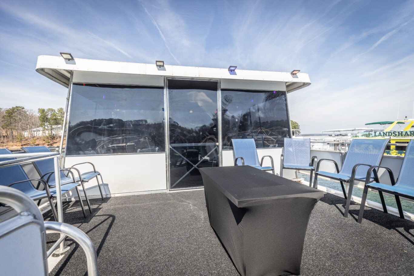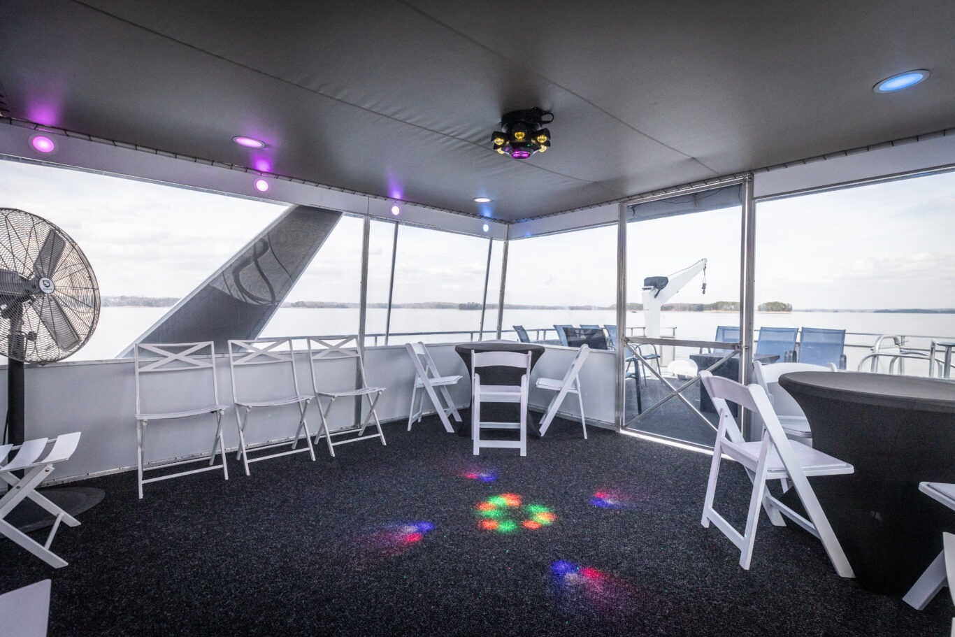Companies frequently use this area for intimate corporate meetings or leadership retreats, combining productivity with the relaxing atmosphere of a private cruise venue on Lake Lanier.
